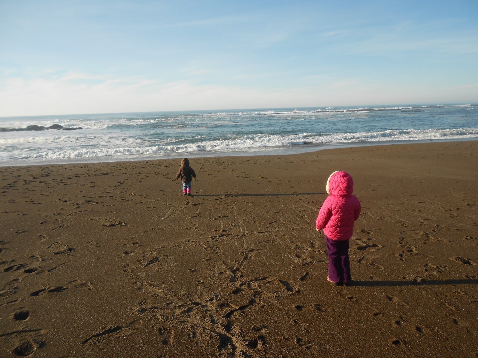 Adam had the day off from medical school so I drove us to the ocean while he studied with the netbook. We shared some youtube videos with the girls about Dr. King in the morning and Claire had lots of questions about how the world could have gotten that far out of hand so she talked to me while Sophie wheezed through a cold and watched Little Mermaid. I could hear Eloise's squeaky giraffe going but I think she mostly stared in adoration at Claire--as is her wont.